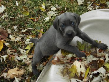 All of our puppies are very well socialized with our children. At the age of two to three weeks we start our de-worming process and by the time they are picked up they have been de-wormed several times and have had their first shot. Parovirus vaccine. With our Weimaraners, we have their tails docked and their dew claws removed at the age of 3-5 days. The labs would be the same with their dew claws. Puppies can normally leave as early as 7 weeks old if they are ready. To see or pick out a puppy, the puppies have to be at least 6 weeks old. They have to have there first shot. If we have to ship them they have to be at least 8 weeks old. For more information on our prices, please click on our rate page at the top of this page or email us about specials!